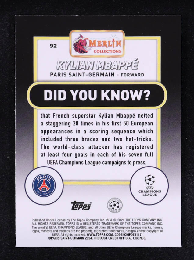 Kylian Mbappe 2023-24 Merlin UEFA Club Competitions Blue Refractors #92 #61/75