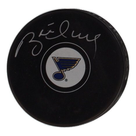 St. Louis Blues Logo Hockey Puck. Hand-signed by Brett Hull (HOF).