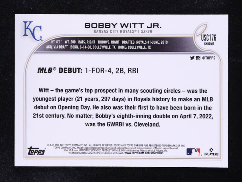 Bobby Witt Jr. 2022 Topps Chrome Purple Rookie Debut #USC176 RC