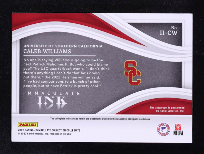 Caleb Williams 2023 Panini Immaculate Ink Collection Collegiate Auto #11-CW RC #10/49
