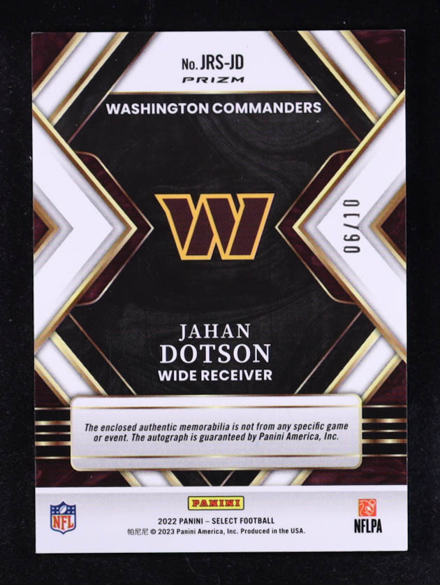 Jahan Dotson 2022 Panini Select Prizm Patch Auto #JRS-JD RC #06/10