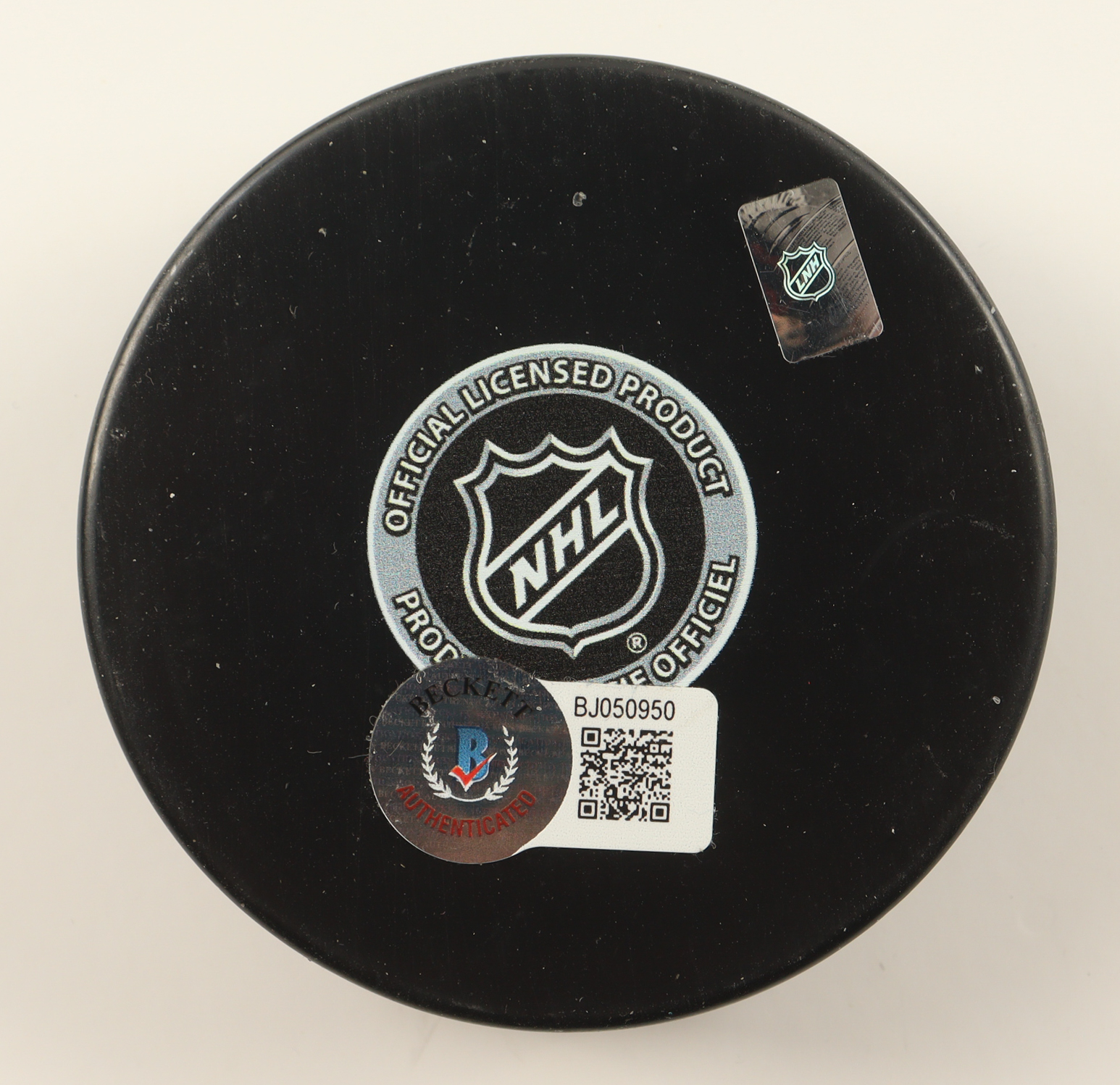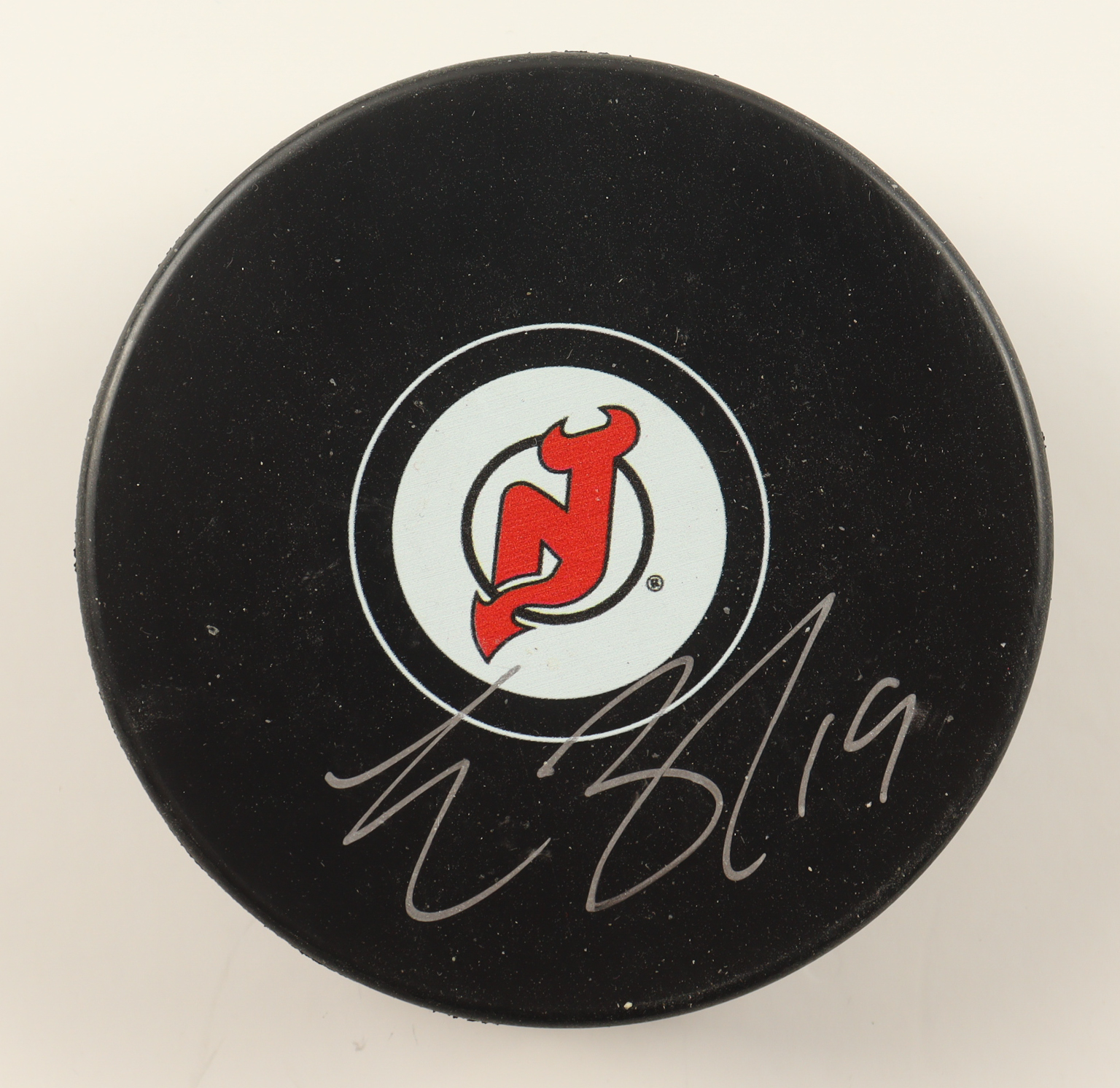 Travis Zajac Signed Devils Logo Hockey Puck (Beckett)