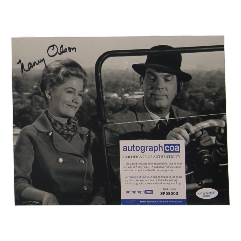 Photograph measures 8" x 10" in size. Hand-signed by Nancy Olson (Betty Schaefer).