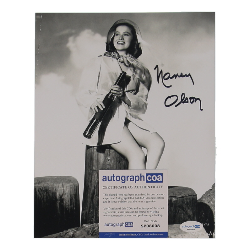 Photograph measures 8" x 10" in size. Hand-signed by Nancy Olson.