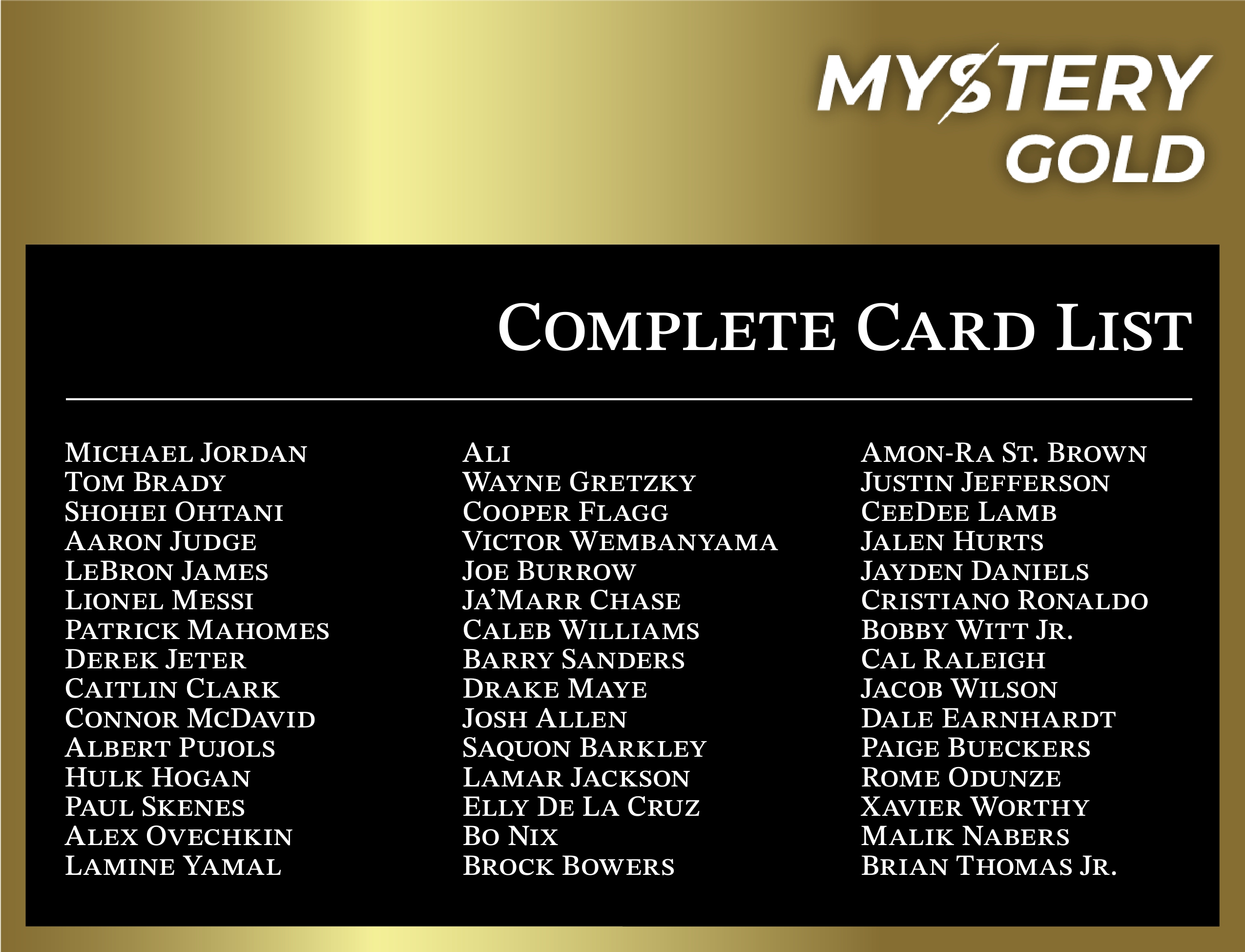 Every box contains 1 PSA, BGS, CGC, or SGC Gem Mint or Pristine graded card of the THE BEST ATHLETES IN SPORTS! Every pack included one of these players:
