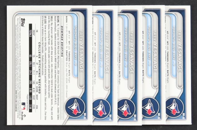 Lot Of (5) Trey Yesavage 2024 Bowman Chrome Draft #BDC92 RC