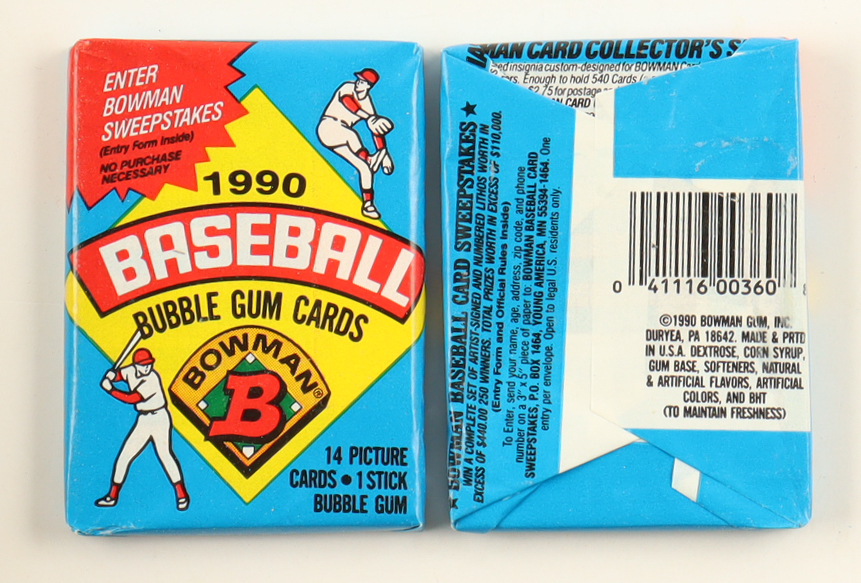 The 1990 Bowman set (produced by Topps) consists of 528 standard-size cards. Unlike most sets, player selection focused primarily on rookies instead of proven major leaguers. The cards feature a white border with the player's photo inside and the Bowman logo on top. The card numbering is in team order with the teams themselves being ordered alphabetically within each league. Notable Rookie Cards include Moises Alou, Travis Fryman, Juan Gonzalez, Chuck Knoblauch, Ray Lankford, Sammy Sosa, Frank Thomas, Mo Vaughn, Larry Walker, and Bernie Williams.