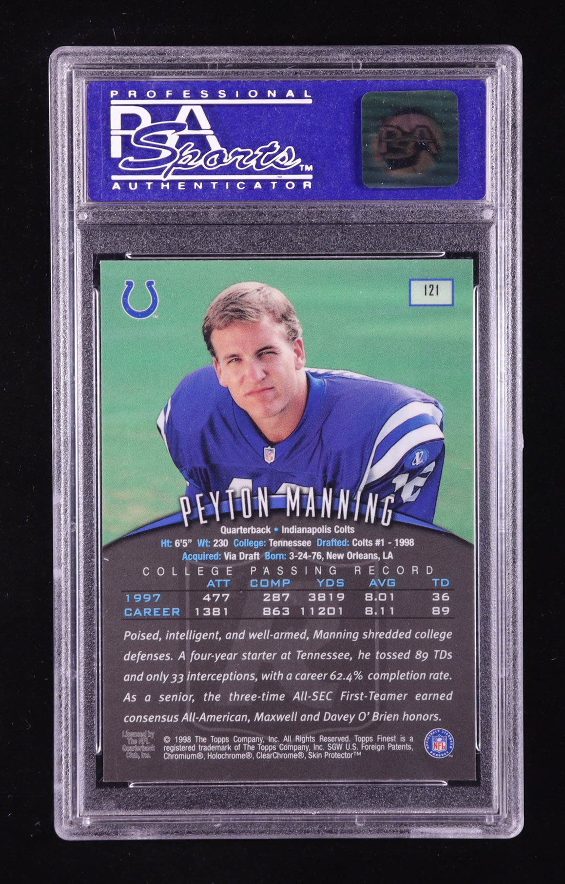 Peyton Manning 1998 Topps Finest W/Coating #121 RC (PSA 9)