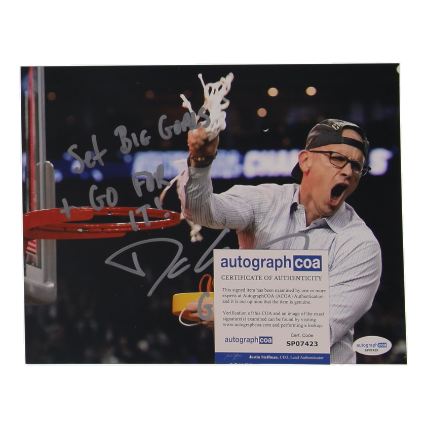 Dan Hurley Signed UConn Huskies 8x10 Photo Inscribed "Set Big Goals + Go For It!" & "Go Huskies!" (ACOA)