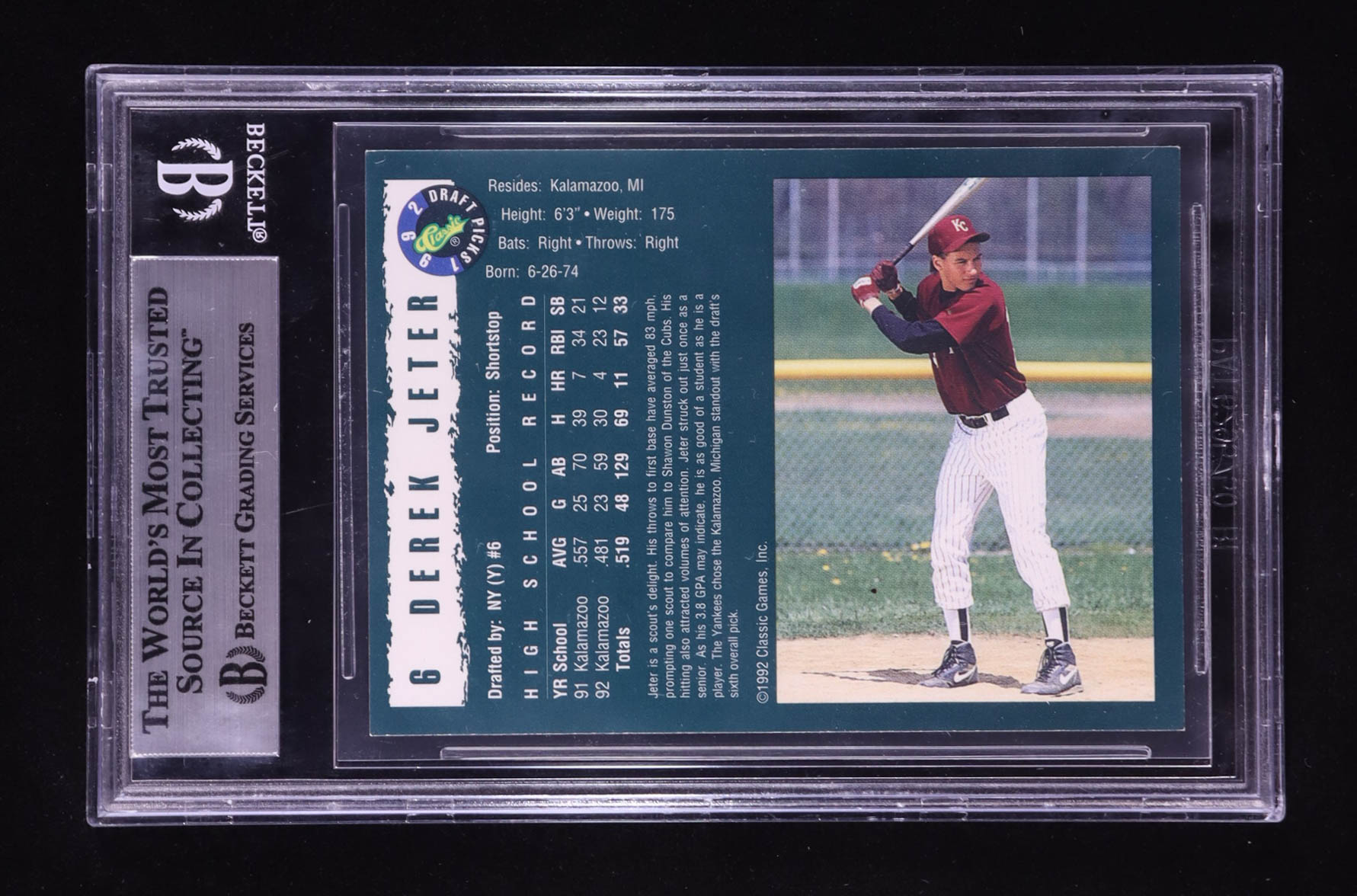 Derek Jeter 1992 Classic Draft Picks #6 RC (BGS 9)