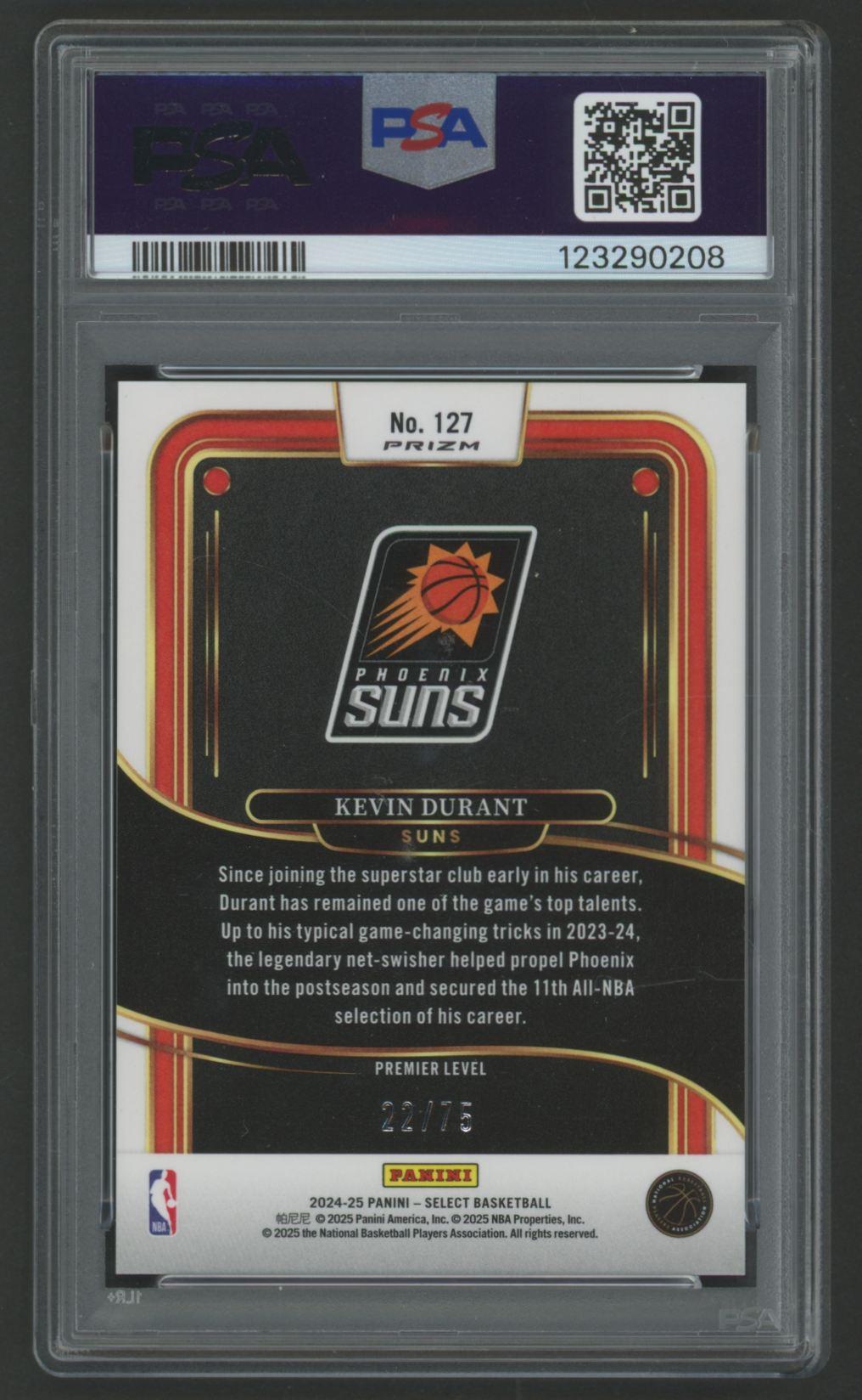 Kevin Durant 2024 Select Neon Green Prizm #127 #22/75 (PSA 10)