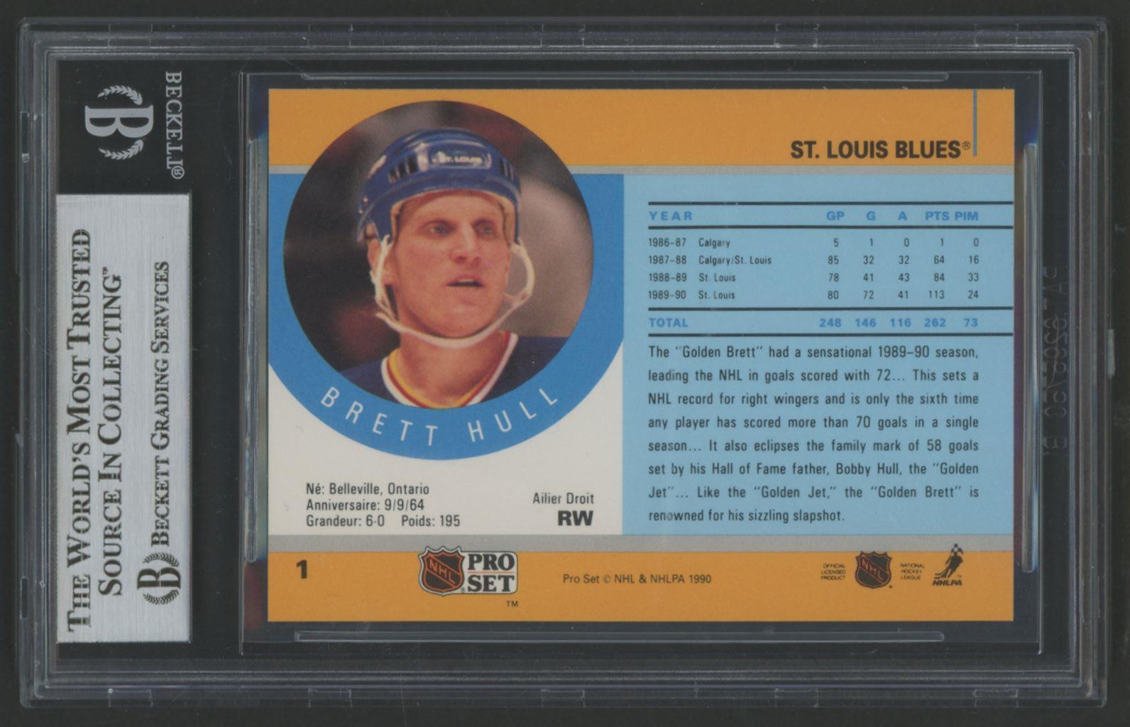 Brett Hull Signed 1990-91 Pro Set #1A Inscribed "HOF 2007 741 Goals" (BGS)