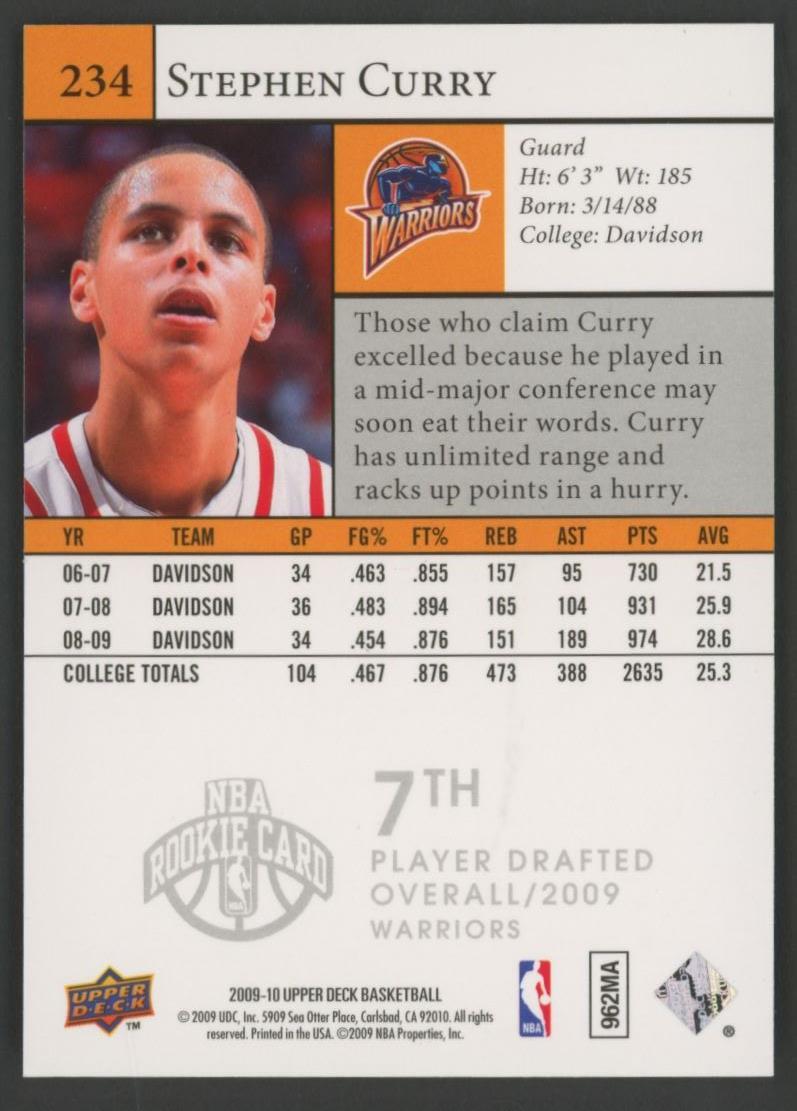 Stephen Curry 2009-10 Upper Deck SP #234 RC