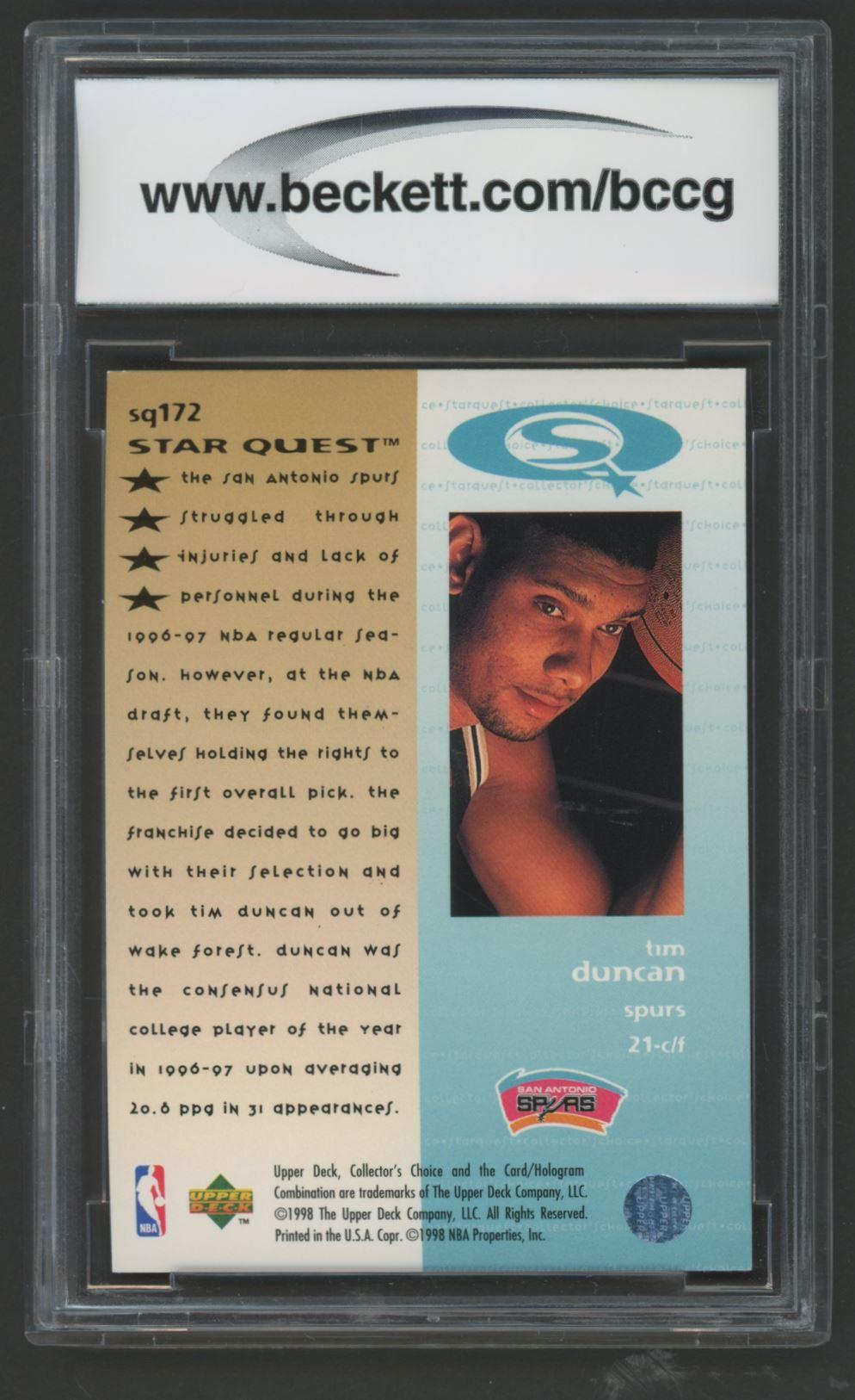 Tim Duncan 1997-98 Collectors Choice Star Quest #172 (BCCG 10)