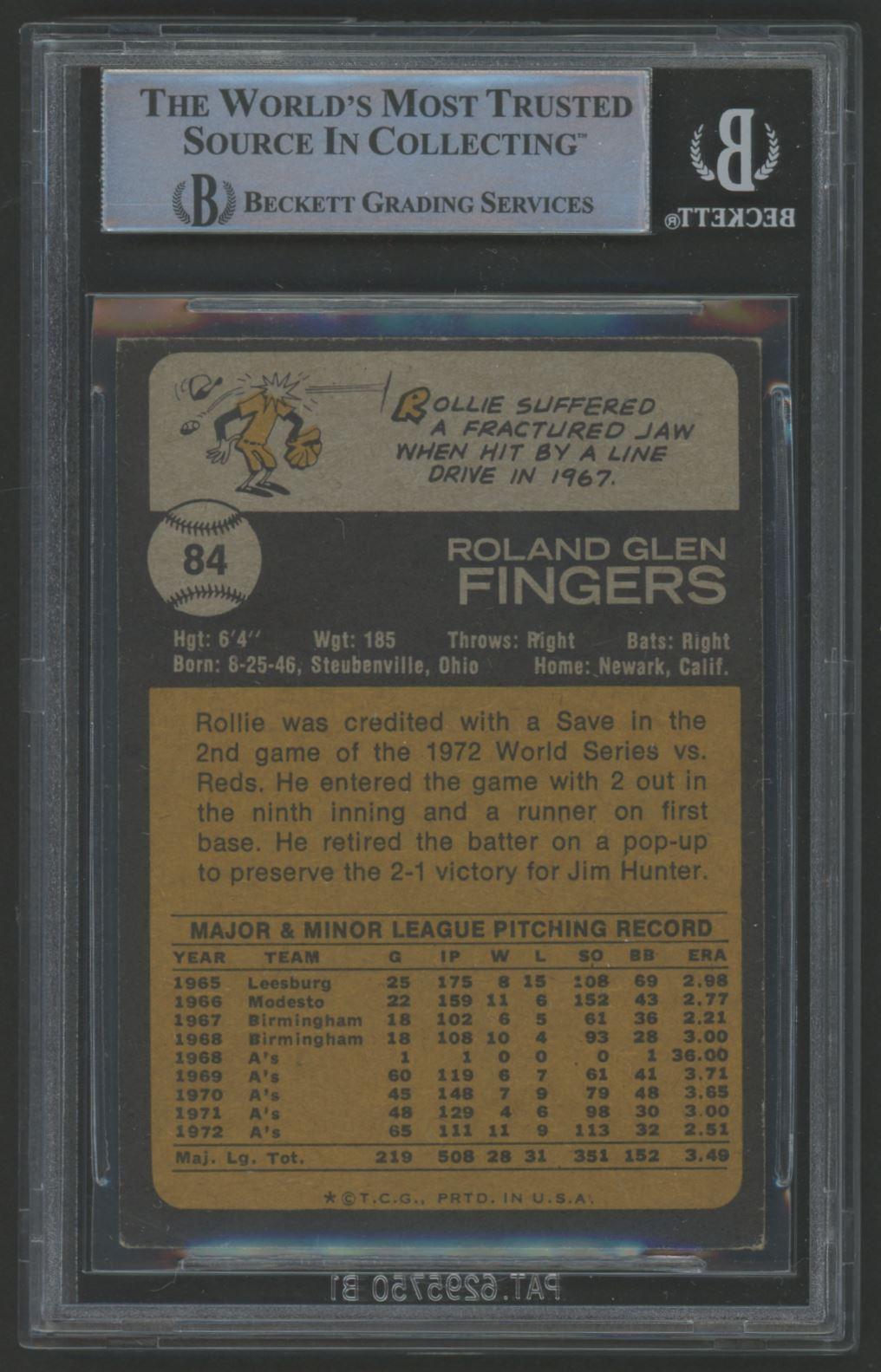 Rollie Fingers Signed 1973 Topps #84 (BGS)