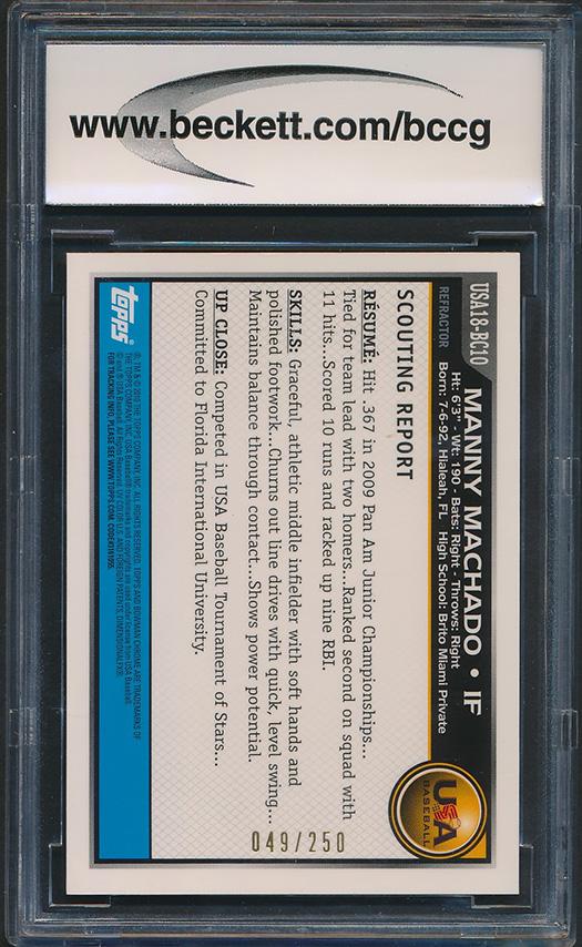 Manny Machado 2010 Bowman Chrome 18U USA Baseball Blue Refractors #18BC10 RC #49/250 (BCCG 9)