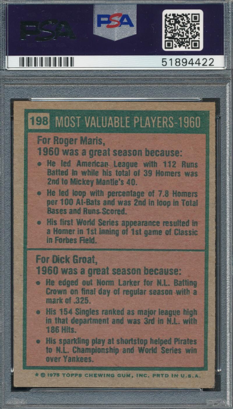 Roger Maris Signed 1975 Topps #198 / Dick Groat MVP (PSA)