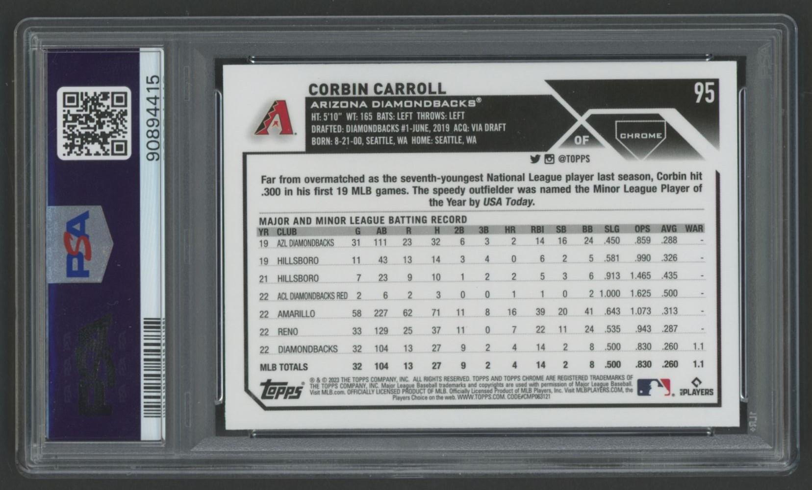 Corbin Carroll 2023 Topps Chrome Pink #95 RC (PSA 10)