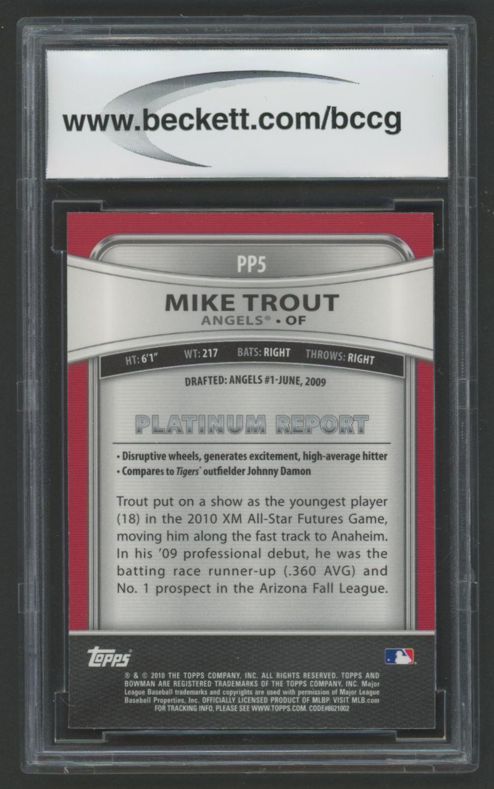 Mike Trout 2010 Bowman Platinum Prospects #PP5 RC (BCCG 9)