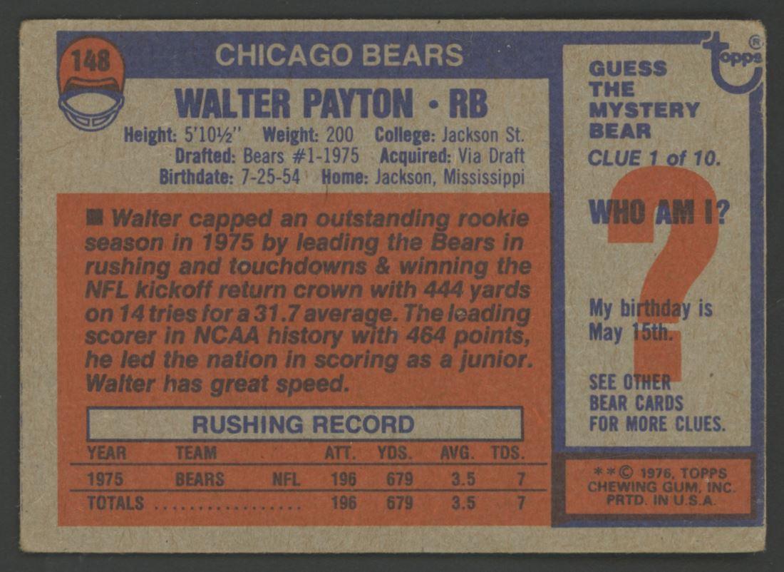 Walter Payton 1976 Topps #148 RC