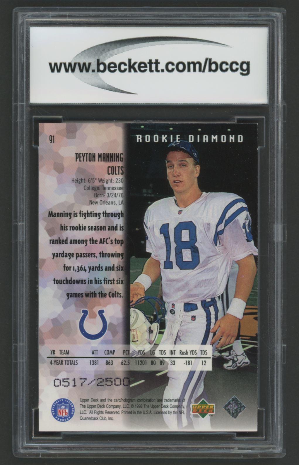 Peyton Manning 1998 Black Diamond Rookies #91 #0517/2500 RC (BCCG 10)