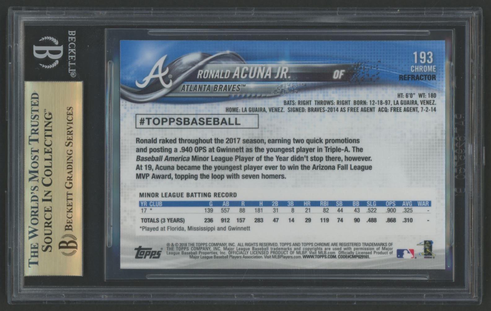 Ronald Acuna Jr. 2018 Topps Chrome Pink Refractors #193 RC (BGS 9.5)