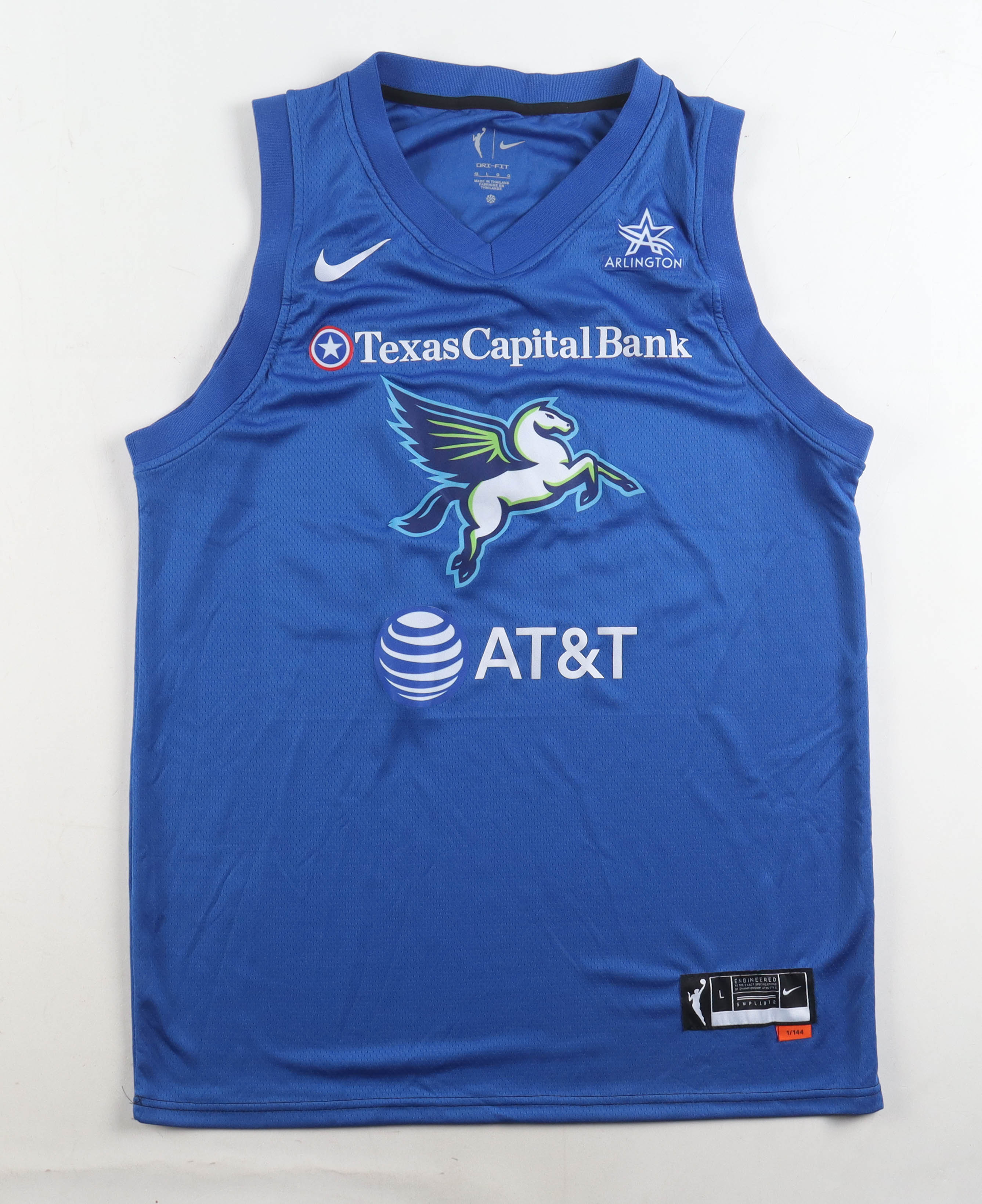 Nike authentic jersey with everything pressed on, size L. Hand-signed by Skylar Diggins-Smith (Dallas Wings).