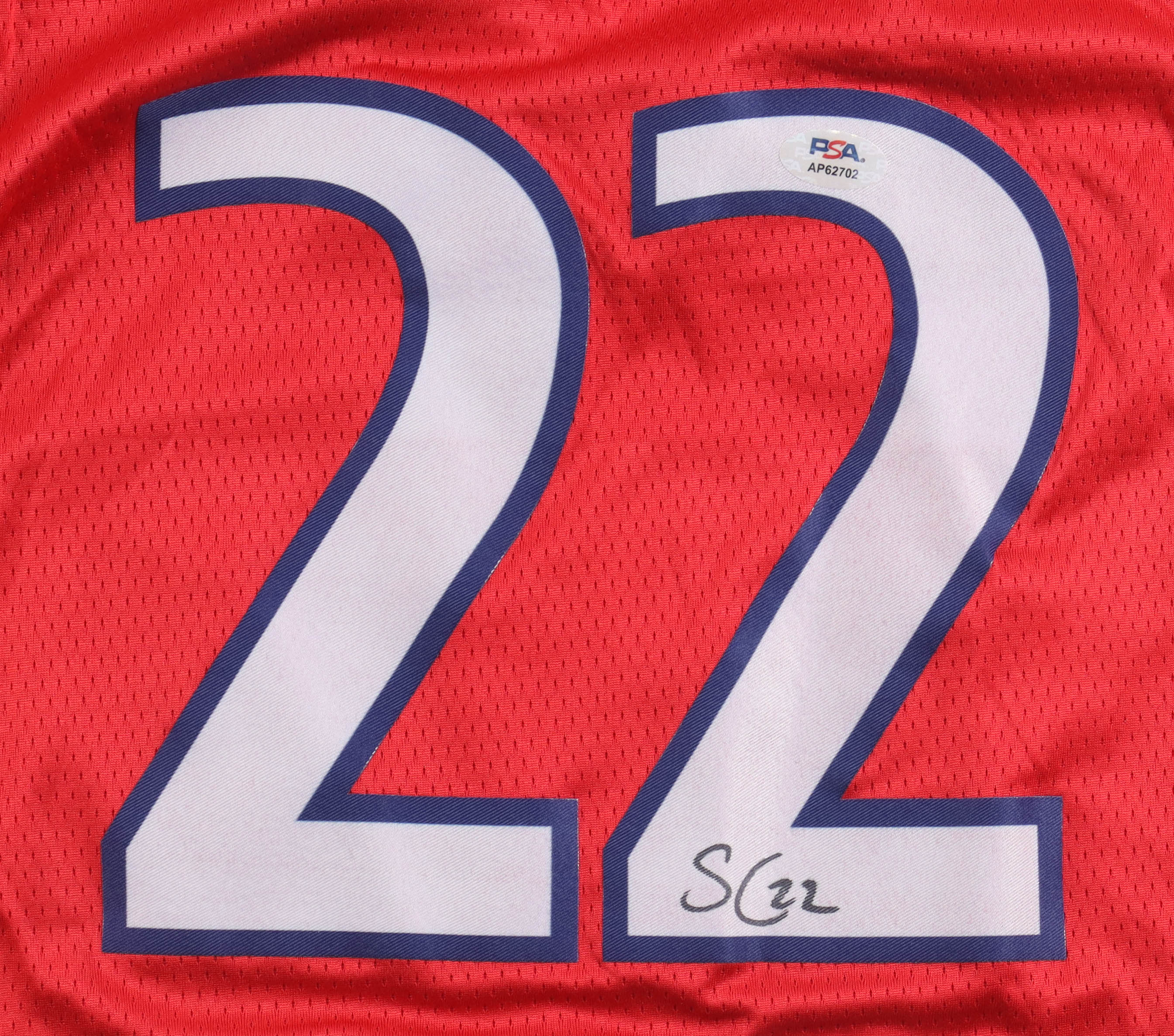 Nike authentic jersey with everything pressed on, size L. Hand-signed by Sonia Citron.