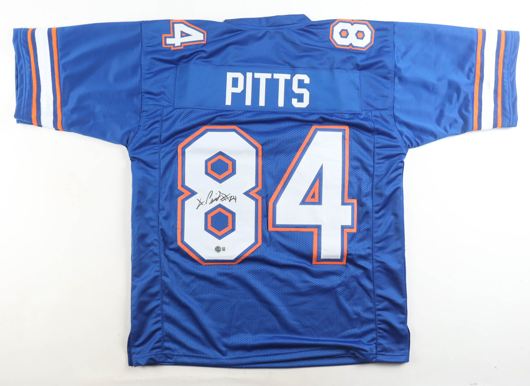 Custom jersey with everything sewn on, size XL. Hand-signed by Kyle Pitts.