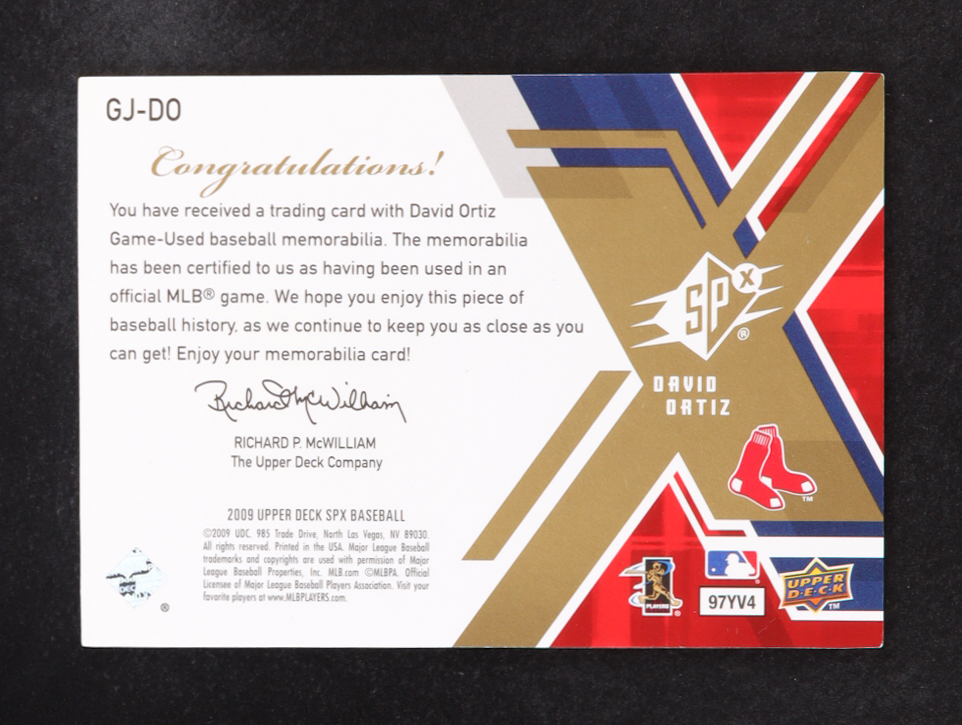 David Ortiz 2009 Upper Deck SPX Game Jersey #GJ-DO