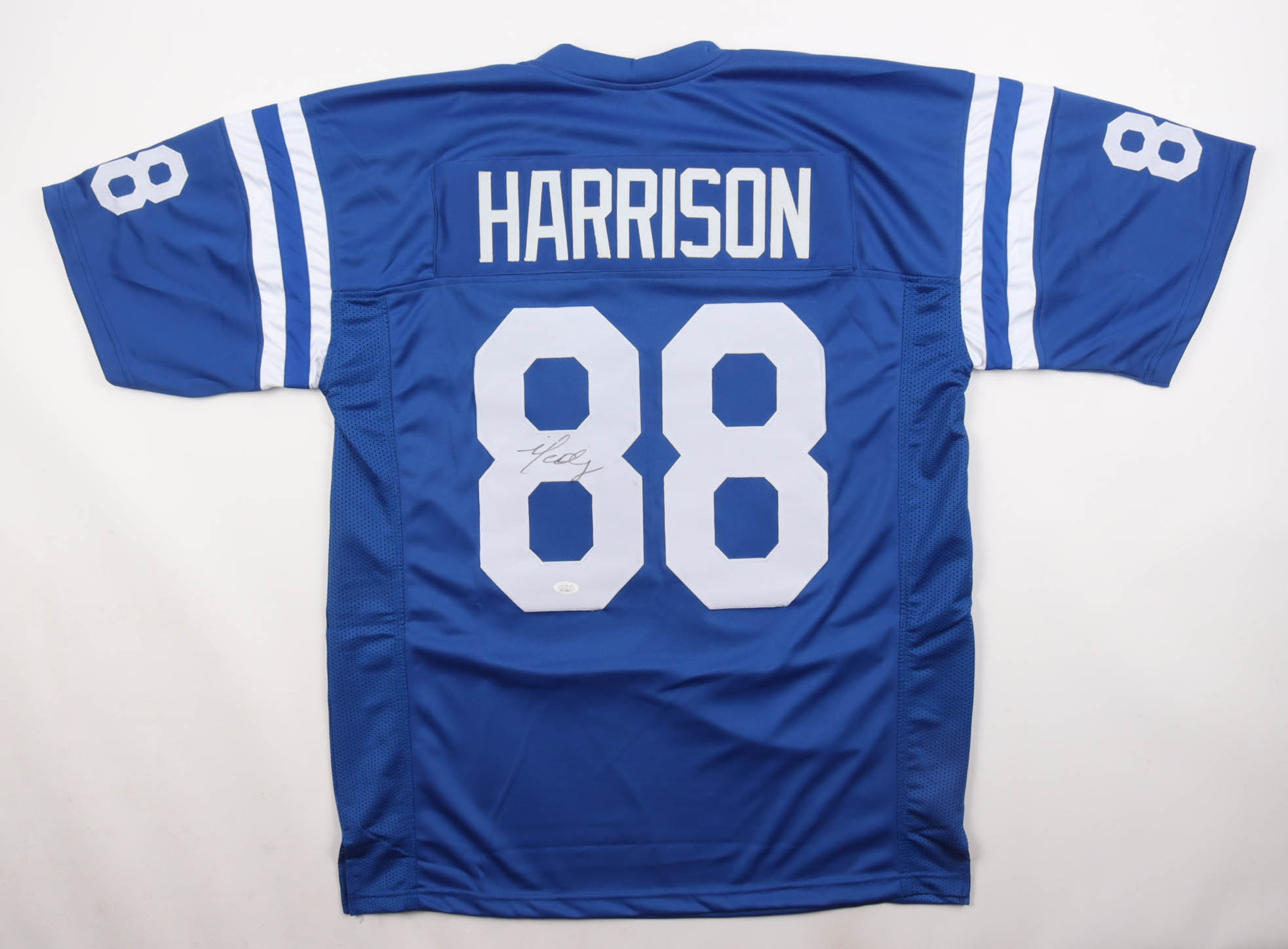 Custom jersey with everything sewn on, size XL. Hand-signed by Marvin Harrison (Indianapolis Colts, HOF).