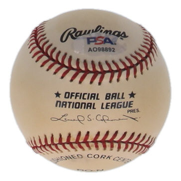 Rawlings Official National League Baseball. Hand-signed by Jeff Reardon (Montreal Expos). Please note, the baseball is stained and naturally toned.