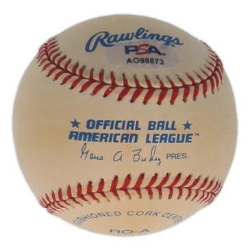 Rawlings Official American League Baseball. Hand-signed by Jim Rice (Boston Red Sox, HOF). Please note, there are stains throughout the baseball and it is naturally toned.