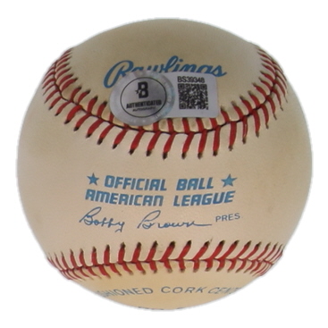 Rawlings Official American League Baseball. Hand-signed by Lou Boudreau (D. 2001, Cleveland Indians, HOF). Please note, the baseball is naturally toned and stained.