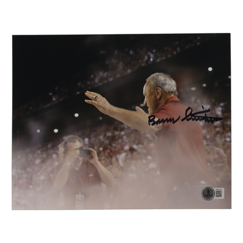 Photo measures 8" x 10" in size and has been hand-signed by Barry Switzer.
