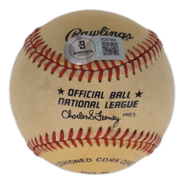 Rawlings Official National League Baseball. Hand-signed by Duke Snider (D. 2011, Brooklyn Dodgers, HOF). Please note, the baseball is naturally toned and stained.