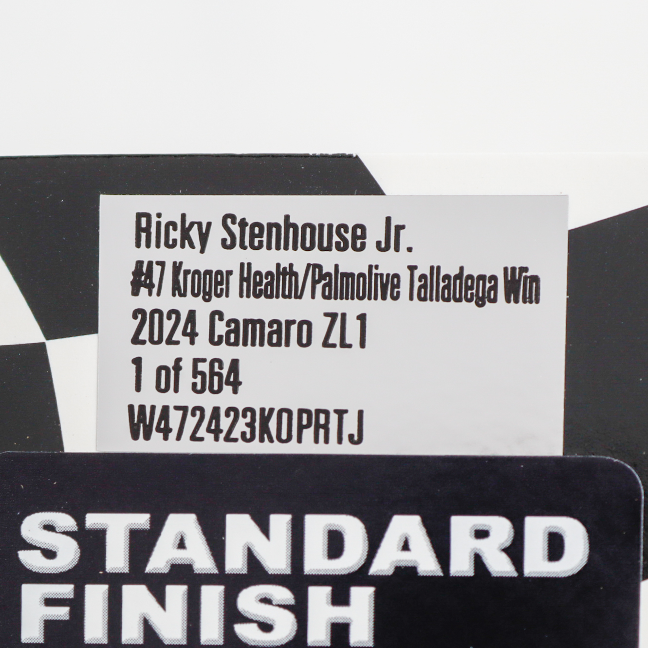 The #47 Kroger Health / Palmolive Talladega Win 2024 Camaro ZL1 is a limited edition to just 564 produced and includes the original packaging.