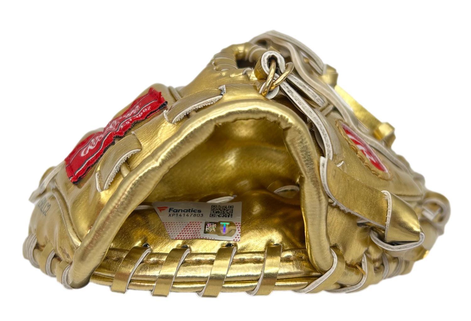 Johnny Bench Signed Mini Gold Baseball Glove (Fanatics)