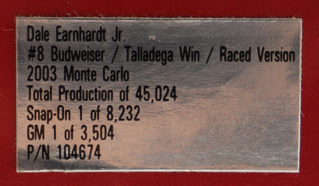 Dale Earnhardt Jr. Signed 2003 #8 Budweiser / Talladega Win / Raced Verison Monte Carlo 1:24 Diecast Car (JSA)