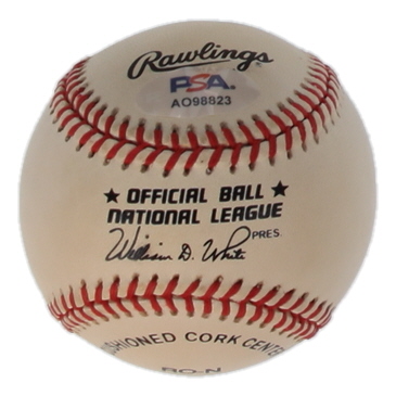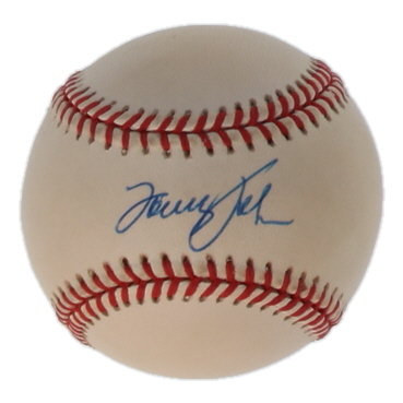 Rawlings Official National League Baseball. Hand-signed by Tommy John (New York Yankees). Please note, the baseball is naturally toned and stained.