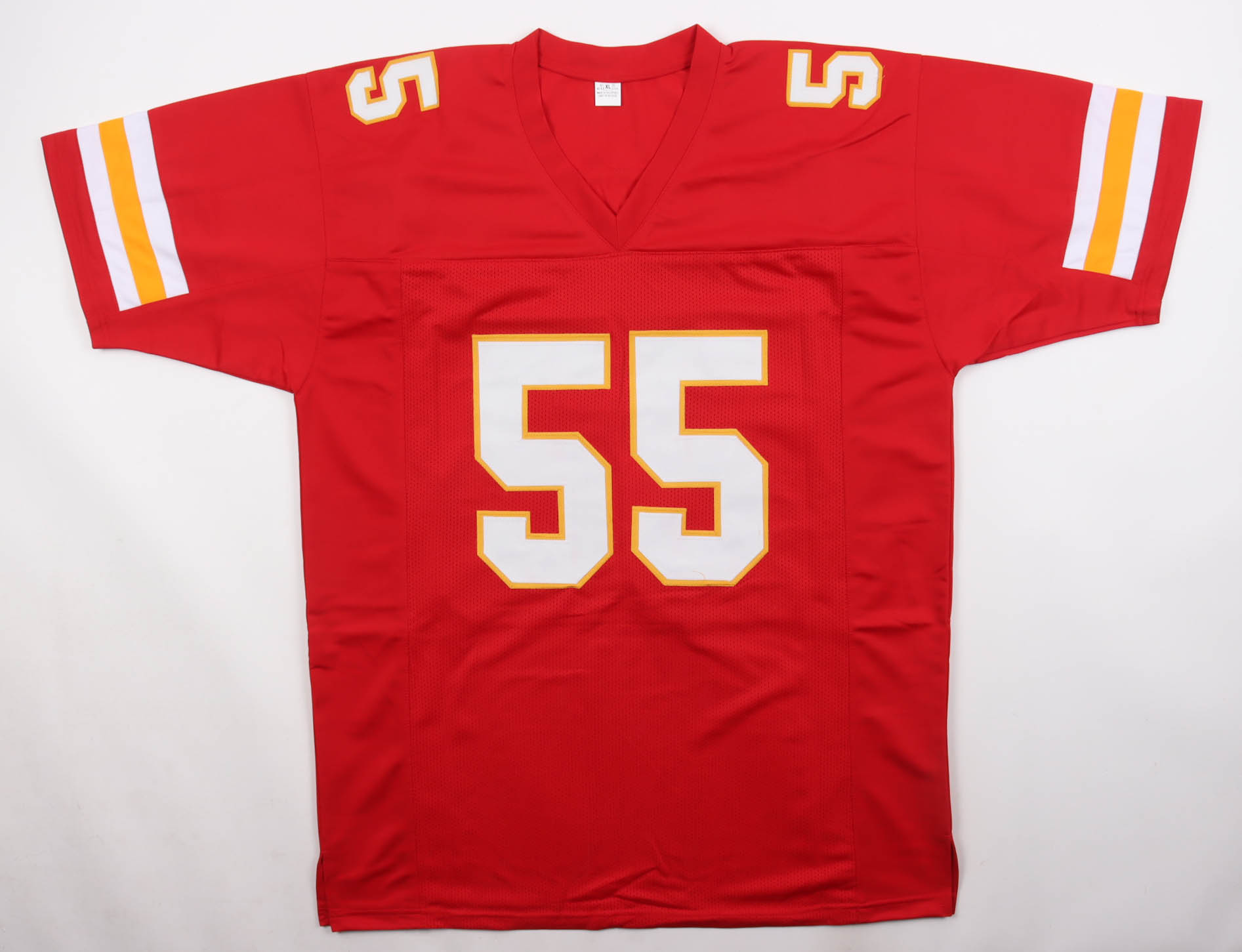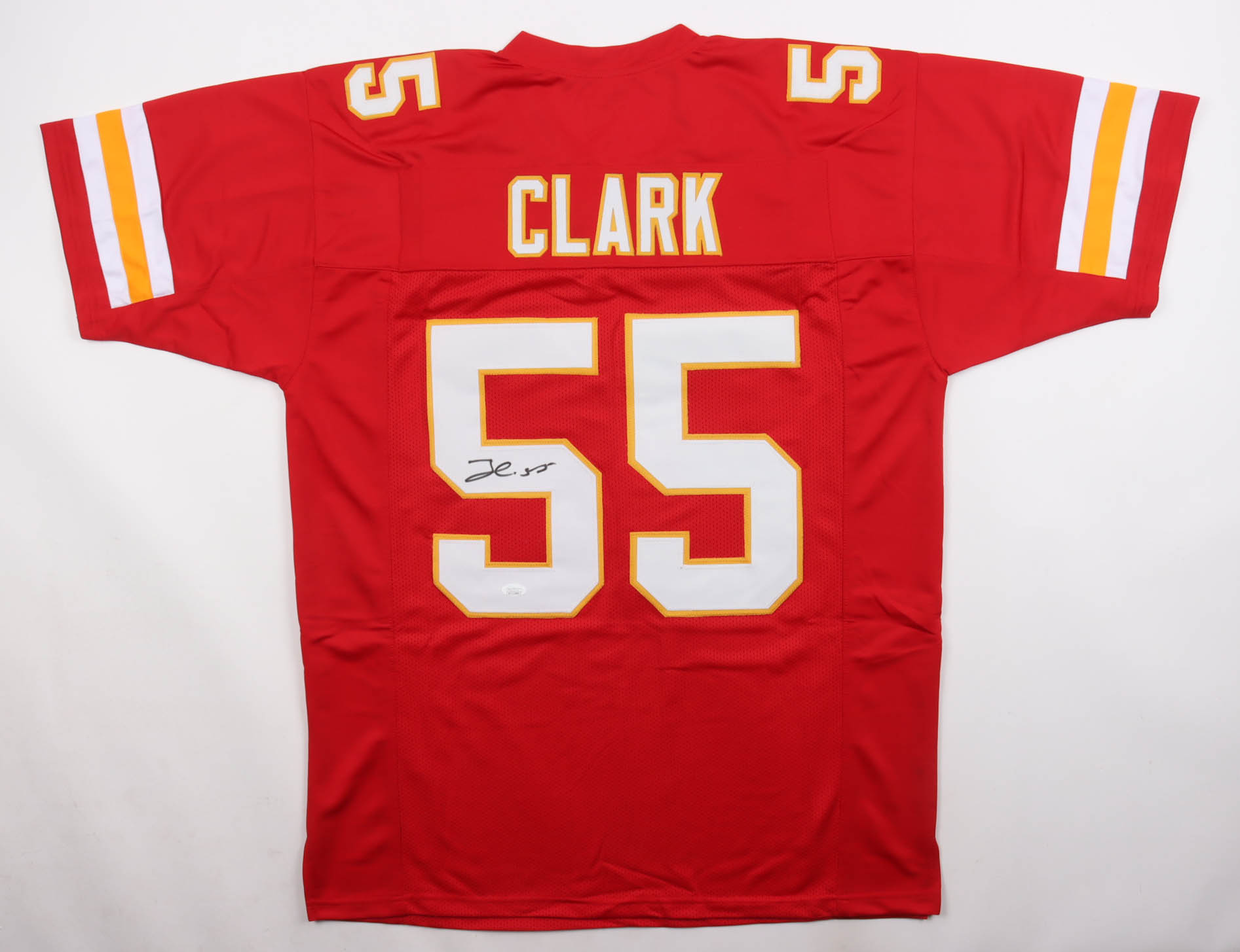 Custom jersey with everything sewn on, size XL. Hand-signed by Frank Clark (Kansas City Chiefs). Please note, the glue is visible through the front numbers.