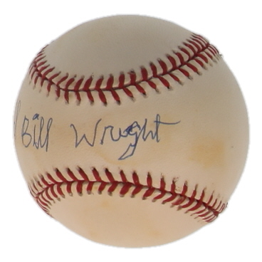 Rawlings Official National League Baseball. Hand-signed by "Wild Bill" Wright (D. 1996, Baltimore Elite Giants, HOF). Please note, the baseball is naturally toning and stained.