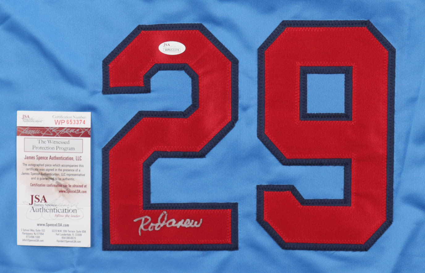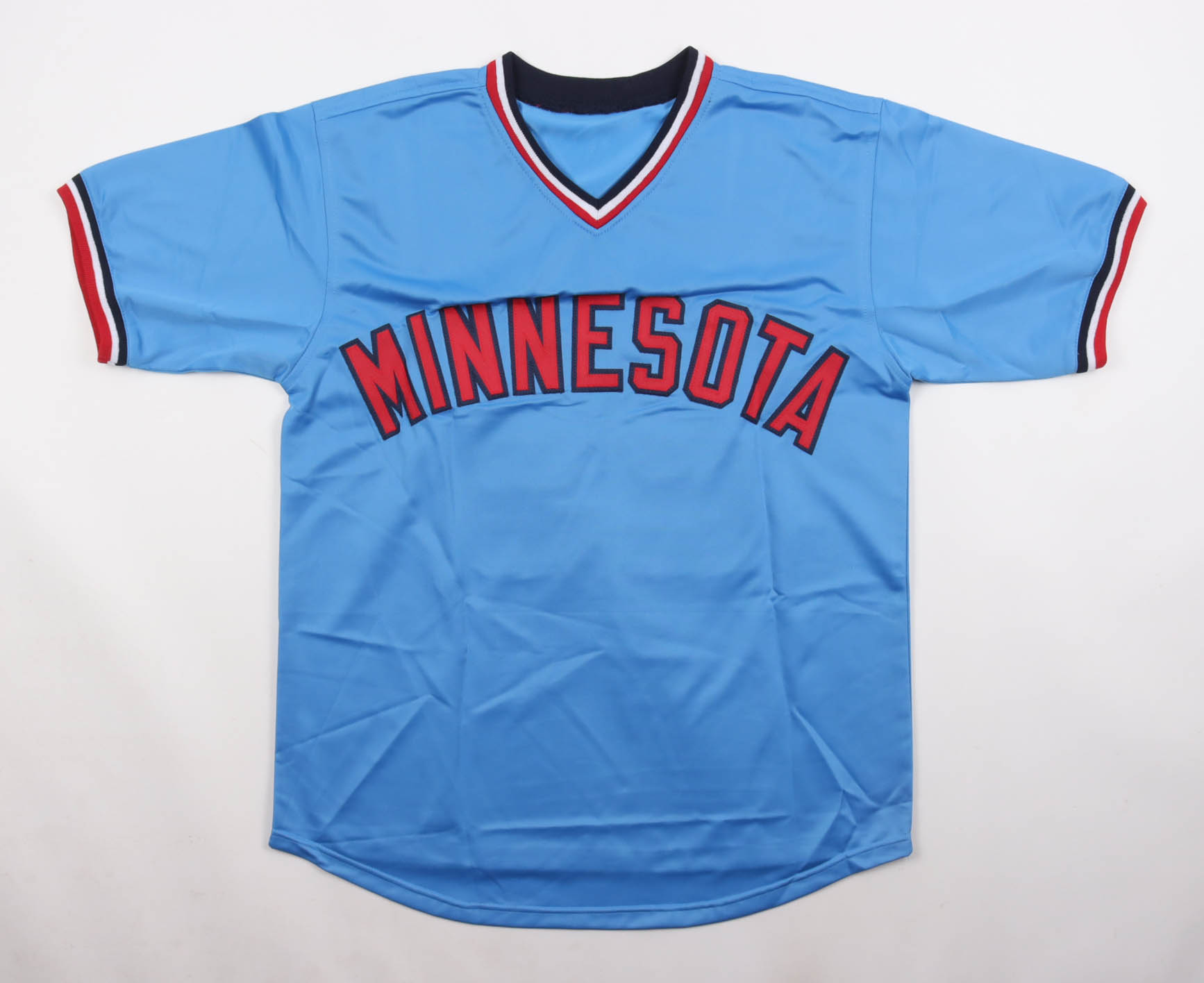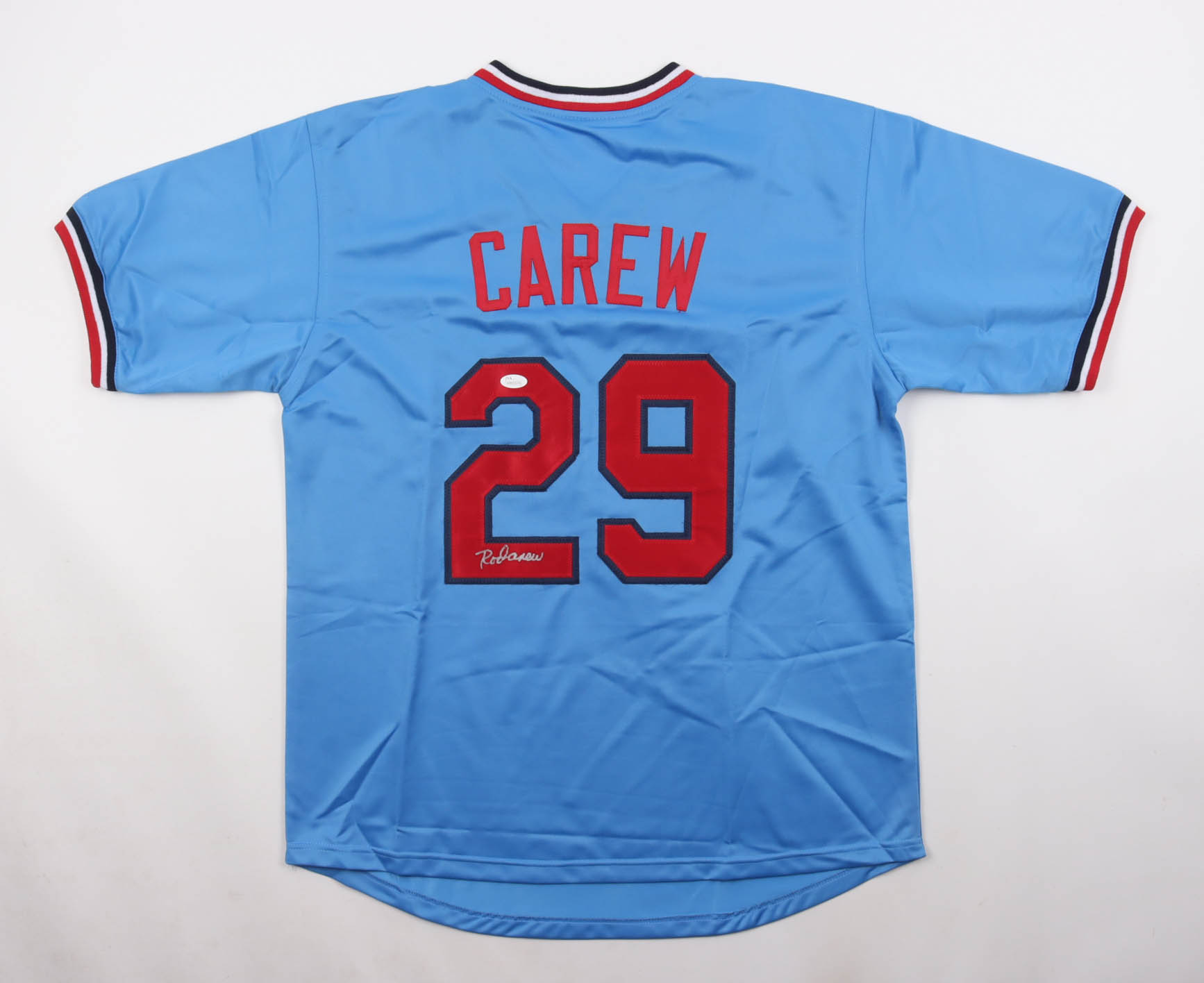 Custom jersey with everything sewn on, size XL. Hand-signed by Rod Carew (Minnesota Twins, HOF).