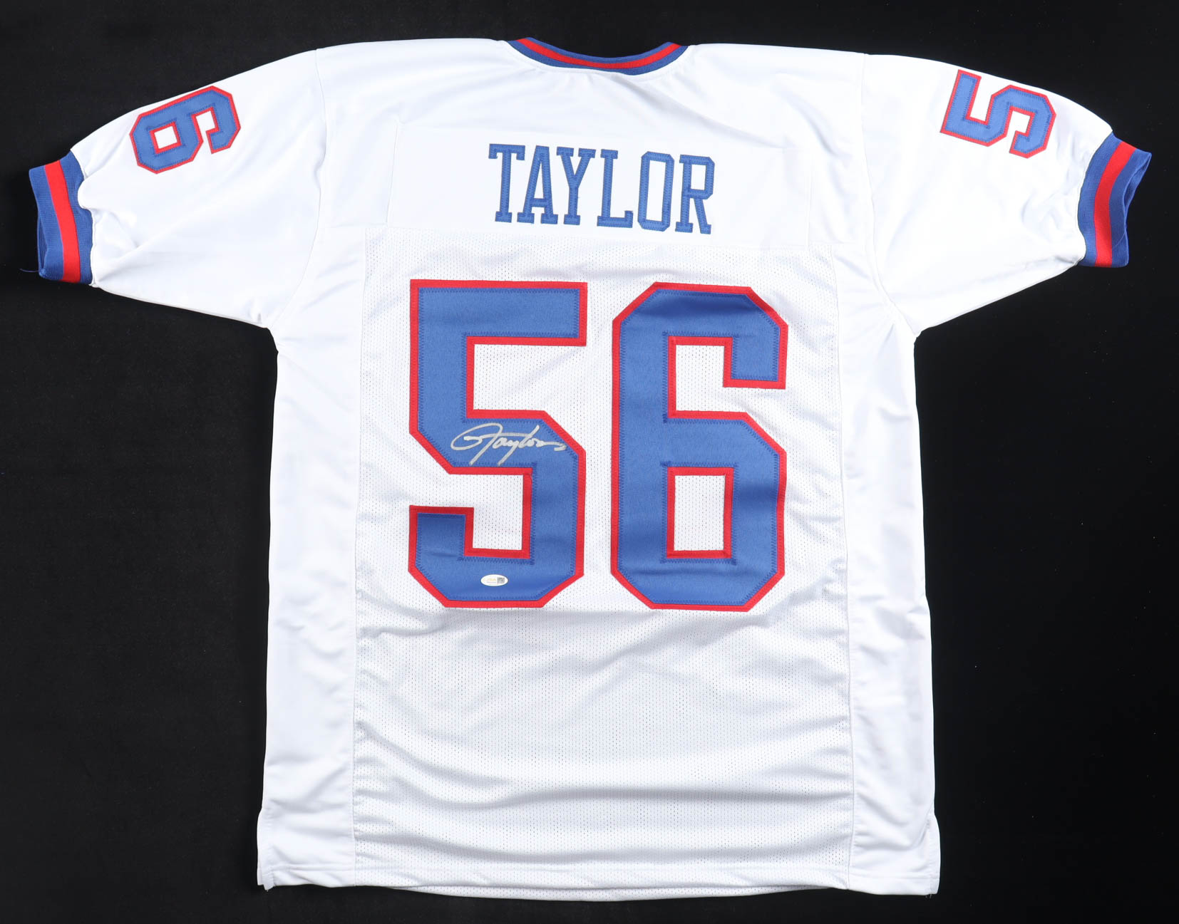 Custom jersey with everything sewn on, size XL. Hand-signed by Lawrence Taylor (HOF).