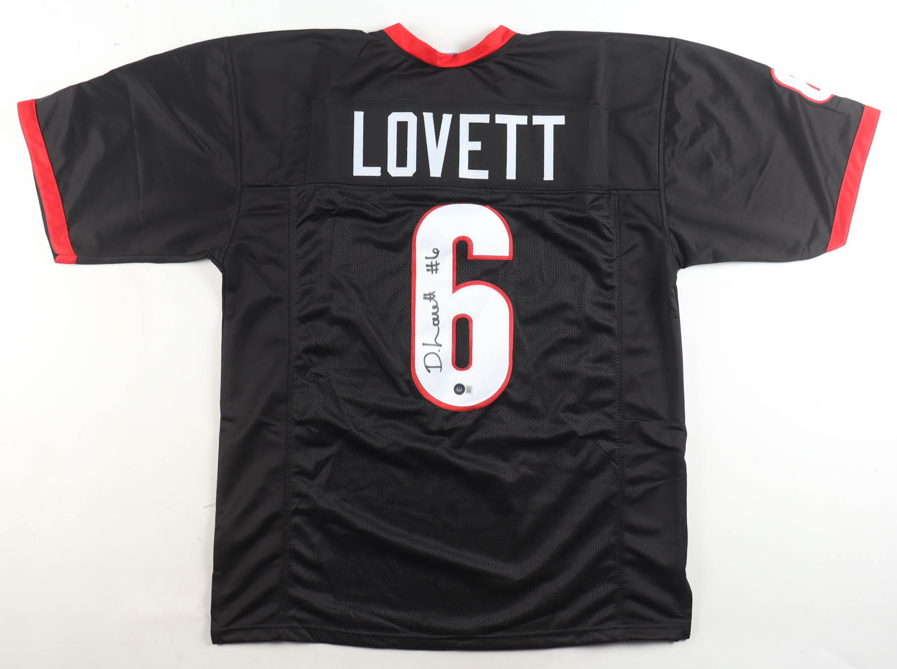 Custom jersey with everything sewn on, size XL. Hand-signed by Dominic Lovett.
