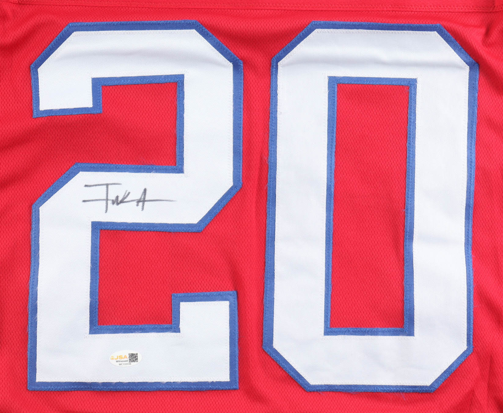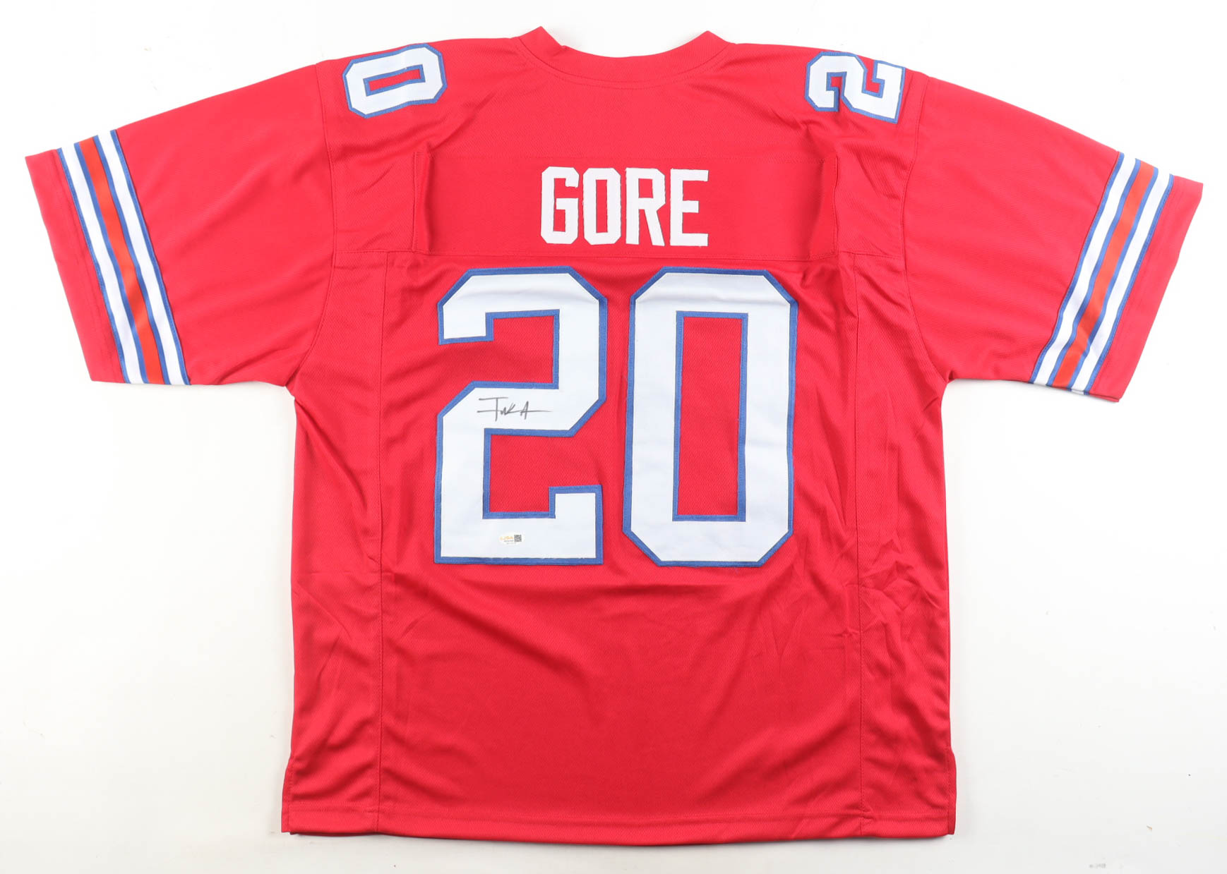 Custom jersey with everything sewn on, size XL. Hand-signed by Frank Gore.
