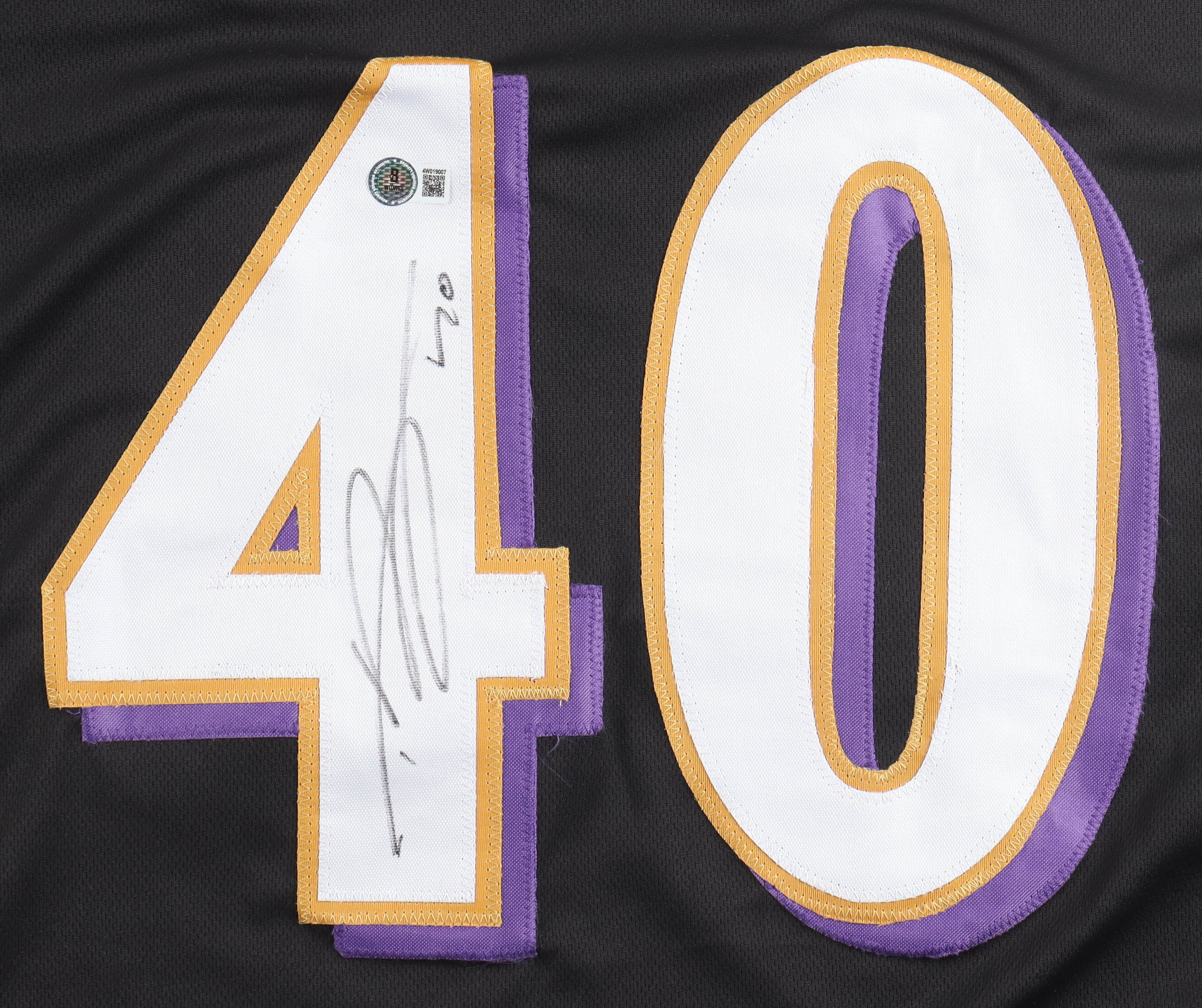 Custom jersey with everything sewn on, size XL. Hand-signed by Teddye Buchanan.