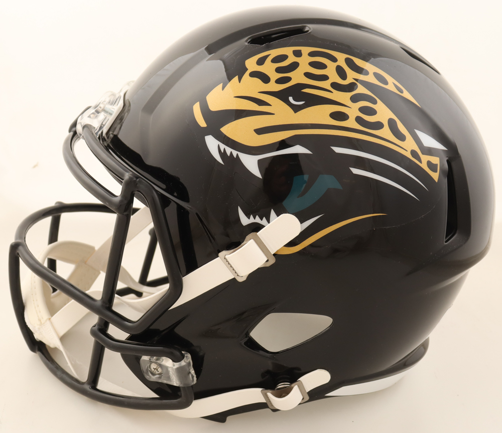 Riddell Jacksonville Jaguars Full-Size Speed Replica Helmet. Hand-signed and inscribed by Mark Brunell.