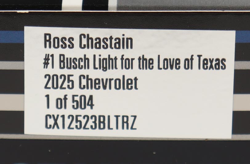 Ross Chastain Signed 2025 #1 Busch Light for the Love of Texas | 1:24 Diecast Car (PA)