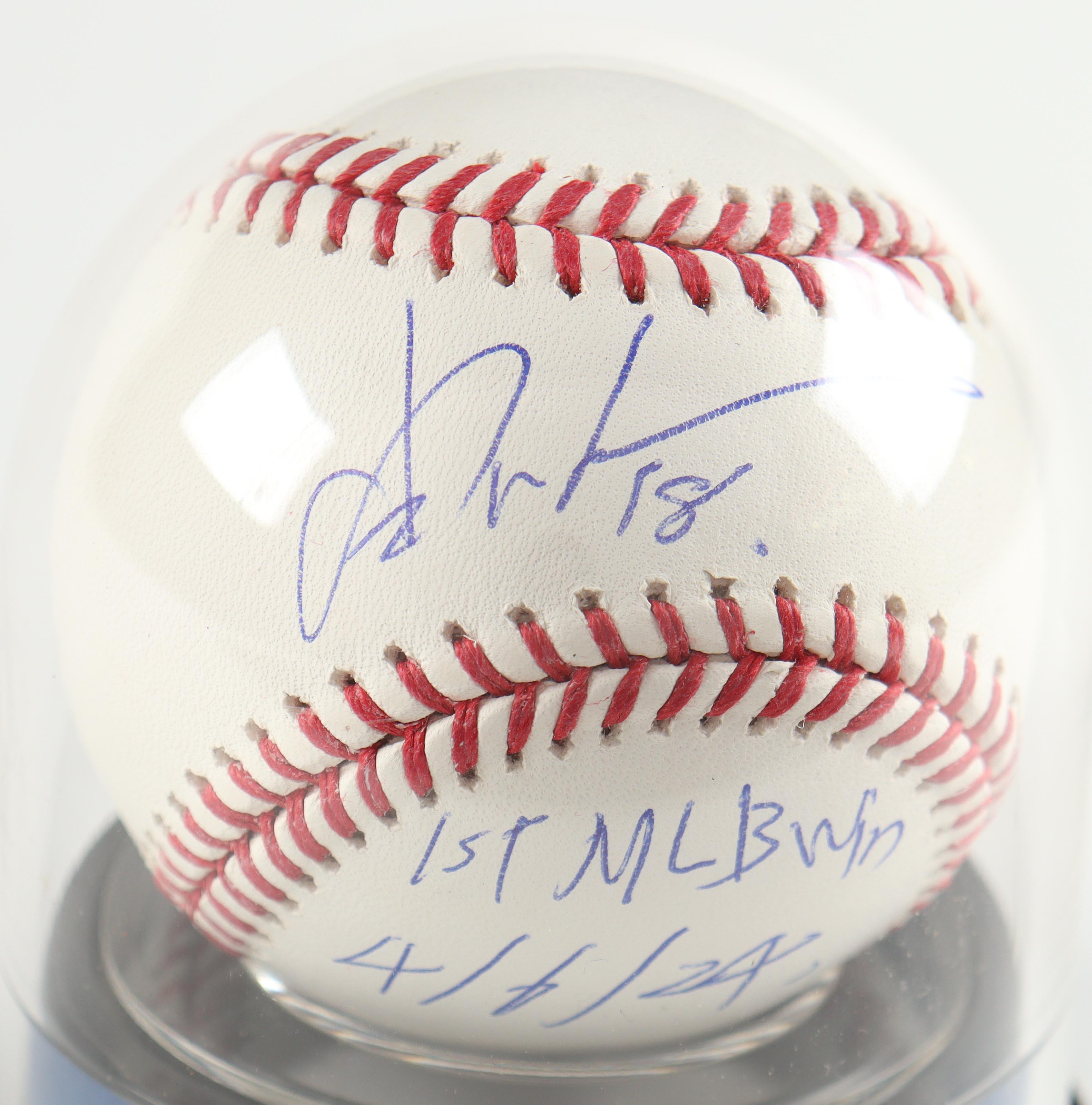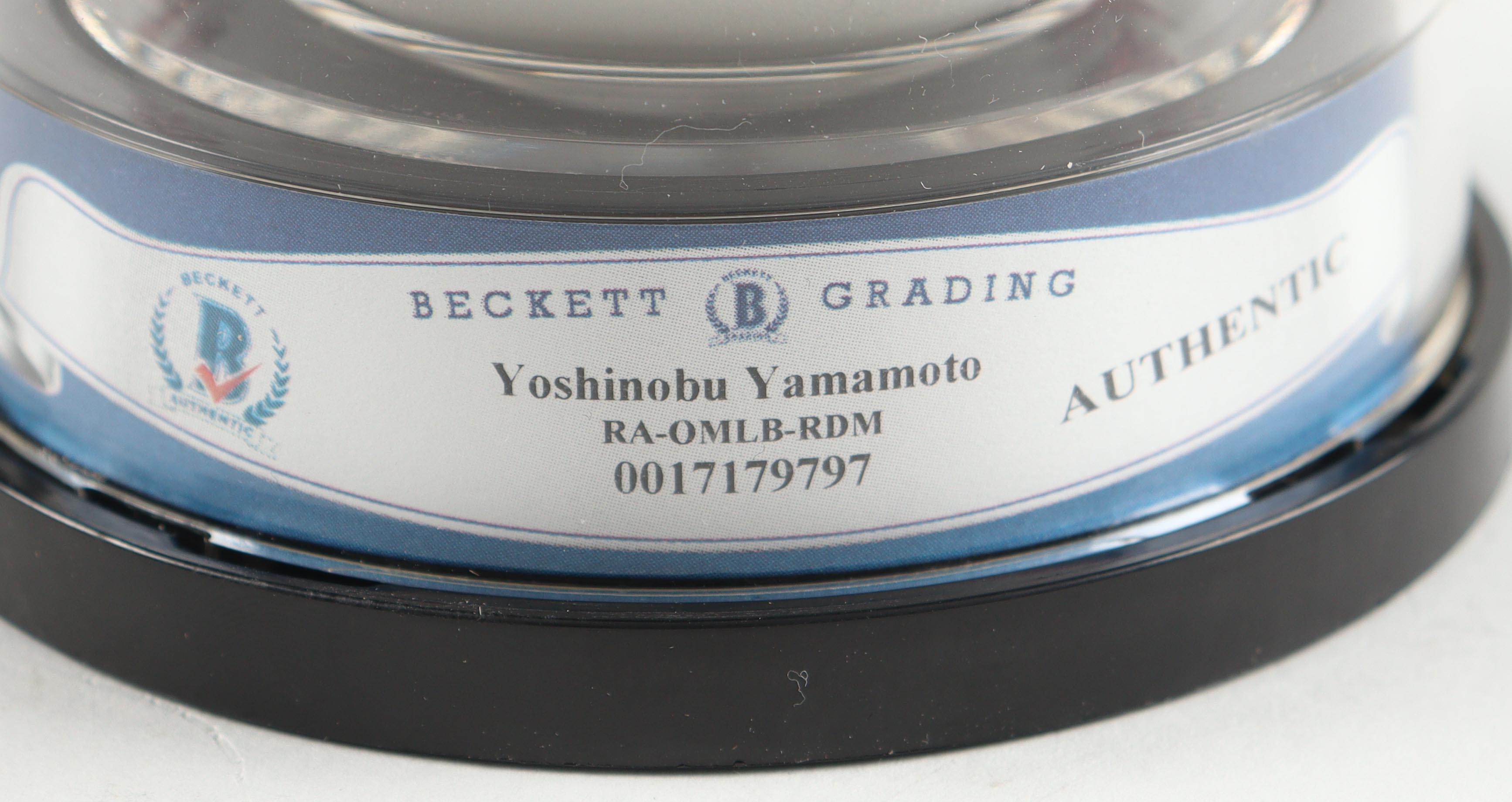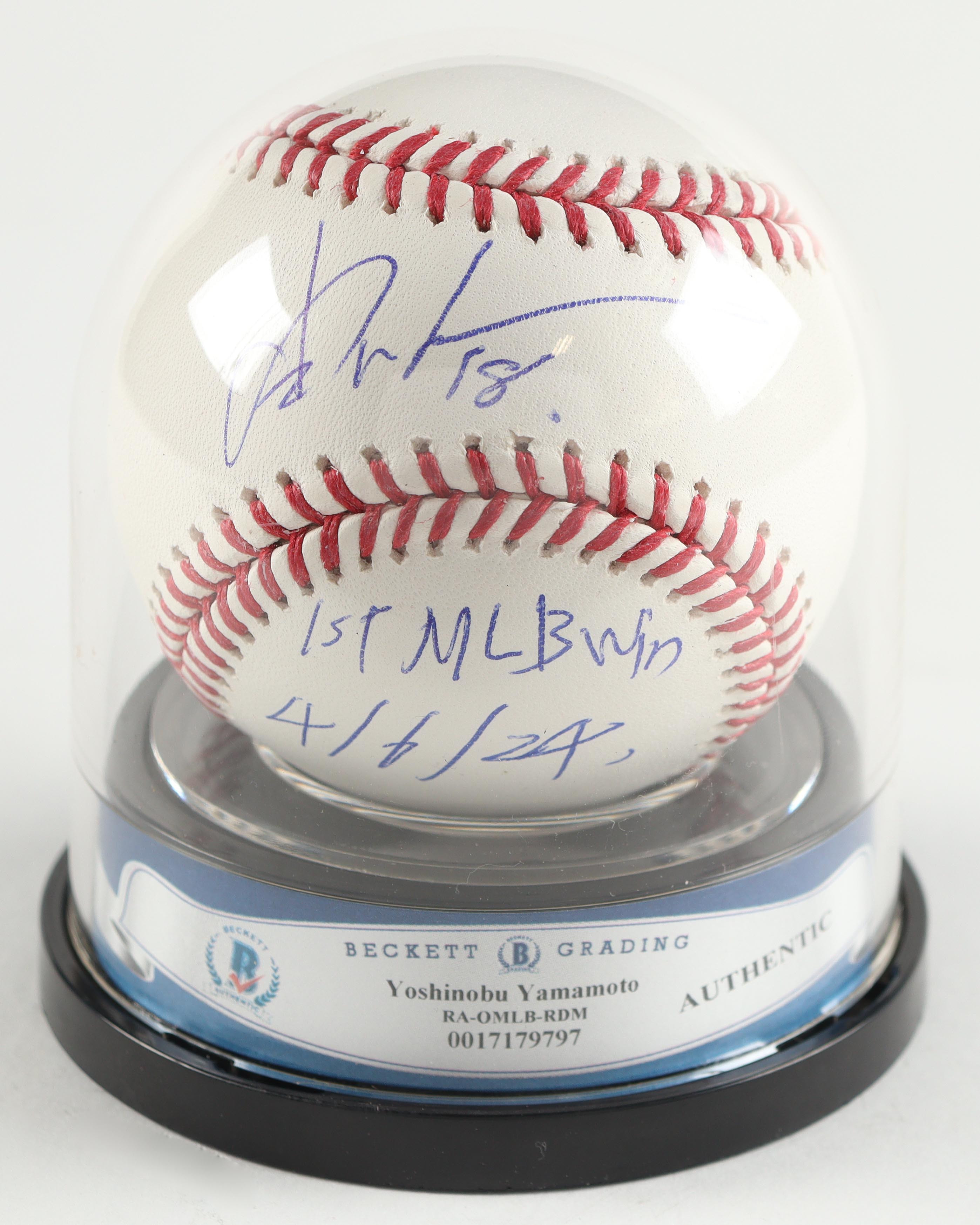 Yoshinobu Yamamoto Signed OML Baseball Inscribed "1st MLB Win 4/6/24" (BGS & MLB)